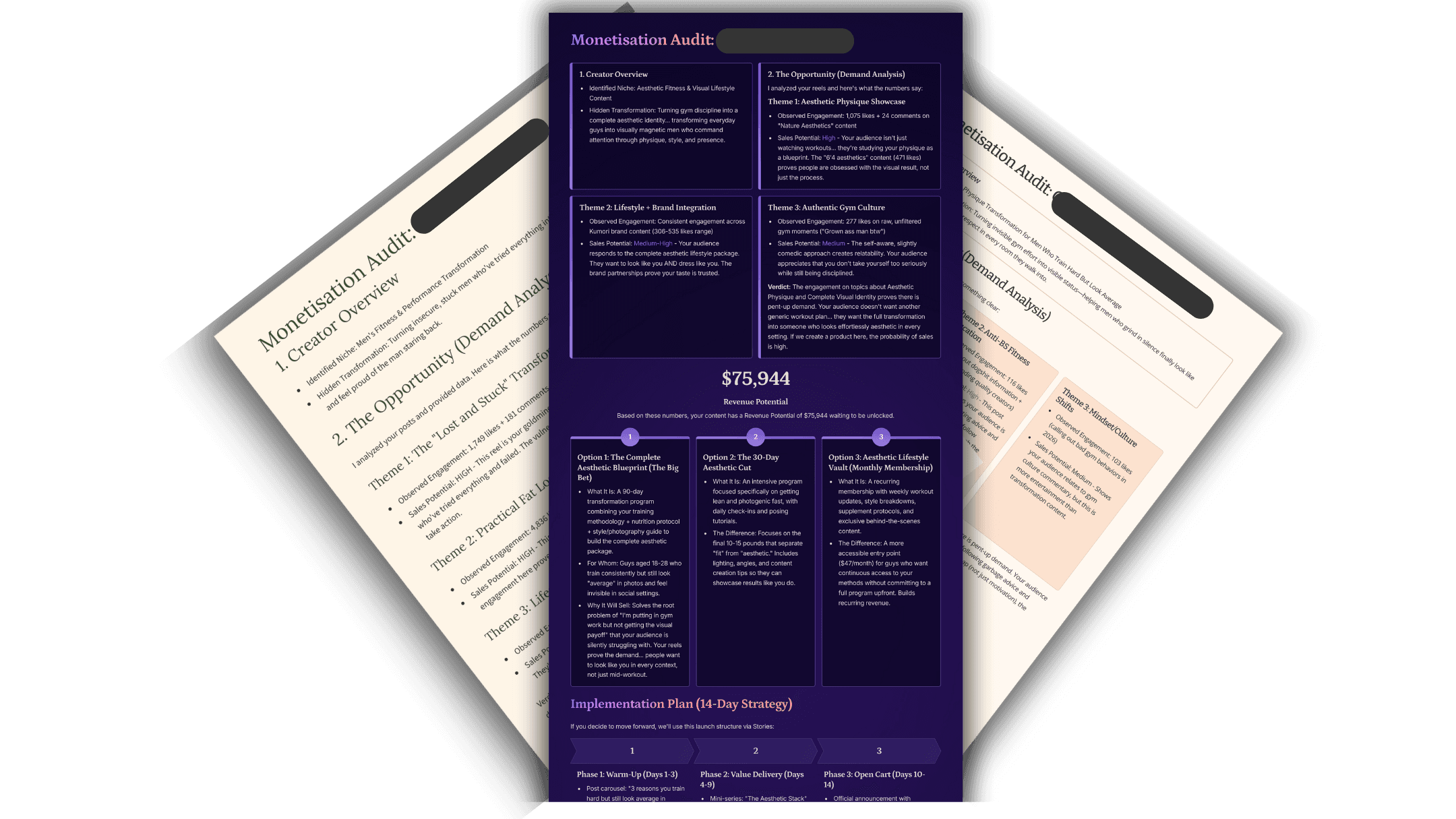 It’s a clear breakdown of how your audience can be turned into revenue — based entirely on your existing content and engagement.